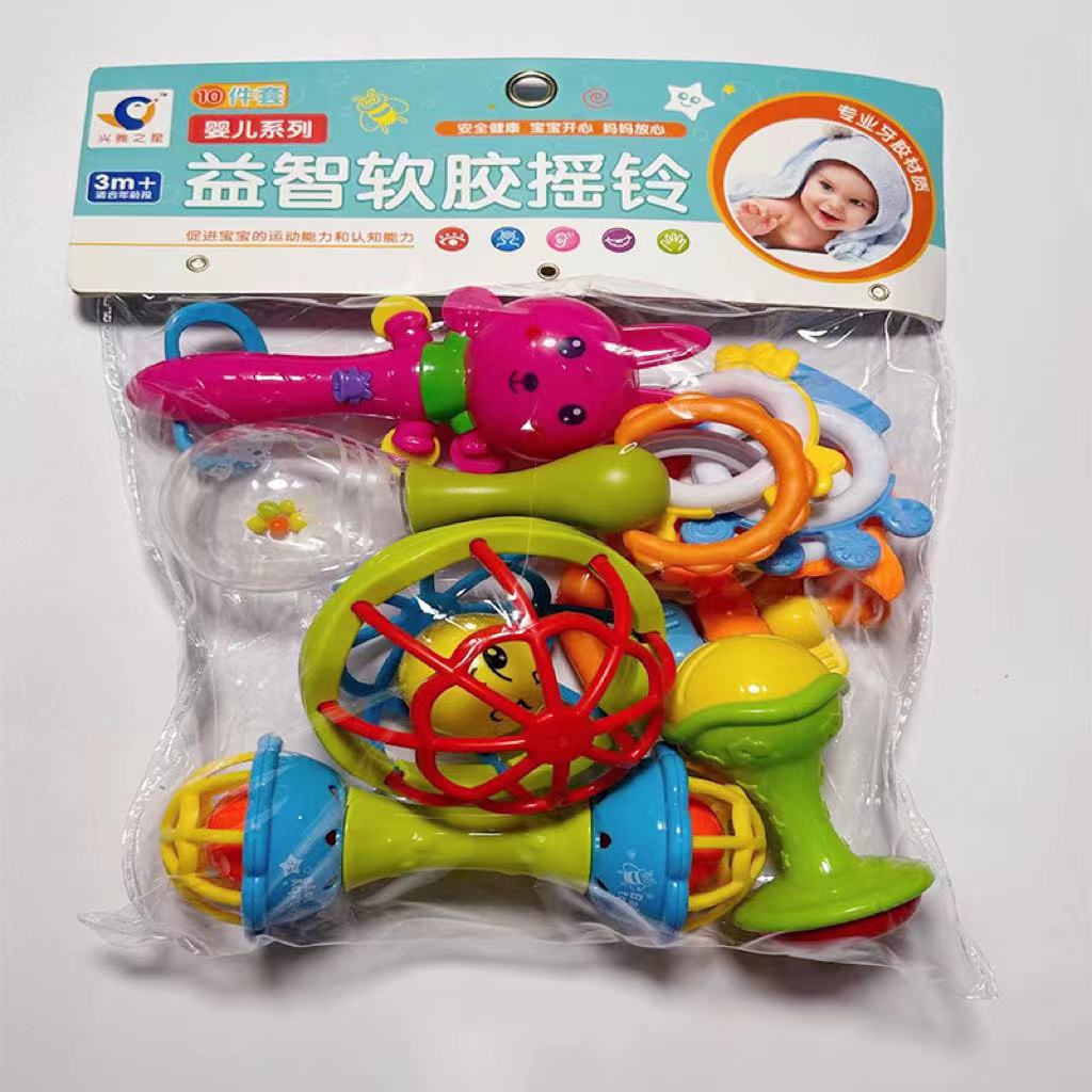 婴幼儿手抓摇铃益智软胶球铃铛响铃牙胶球可咬玩具婴儿宝宝拨浪鼓